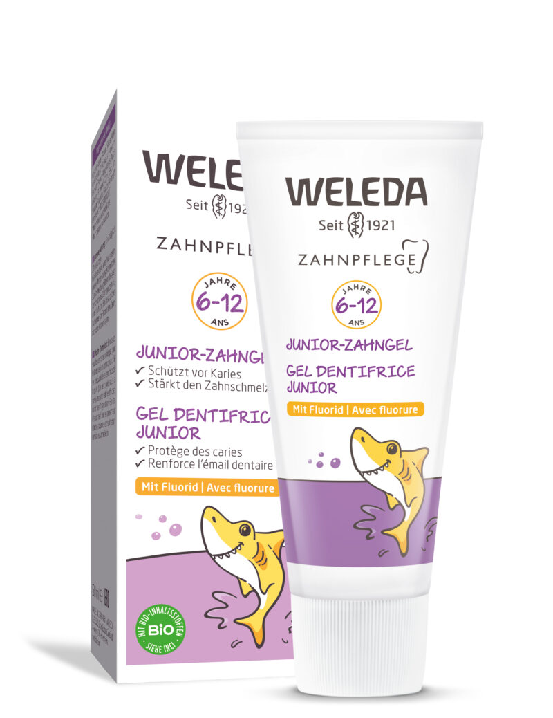 Weleda JUNIOR hambageel fluoridiidiga. Lastele alates 6. eluaastast. Sisaldab fluori 1450 ppm. Laste hambageel on väljatöötatud koos hambaarstidega ja mõeldud spetsiaalselt piimahammaste puhastamiseks. Terved piimahambad on aluseks tervetele jäävhammastele. Kaitseb tõhusalt hambaaukude eest ja tugevdab hambaemaili. Sobib igapäevaseks hammaste puhastamiseks. Ränil baseeruv mineraalne puhastusaine puhastab hambaid õrnalt, kuid põhjalikult. Reeglipärane geeli kasutamine vähendab hambakattu, kaitseb ja hooldab hambaid. Saialilletõmmis hoiab igemed ja suuõõne tervena. Fluoriidiga. Piparmündivaba ja looduslikult maheda maitsega.