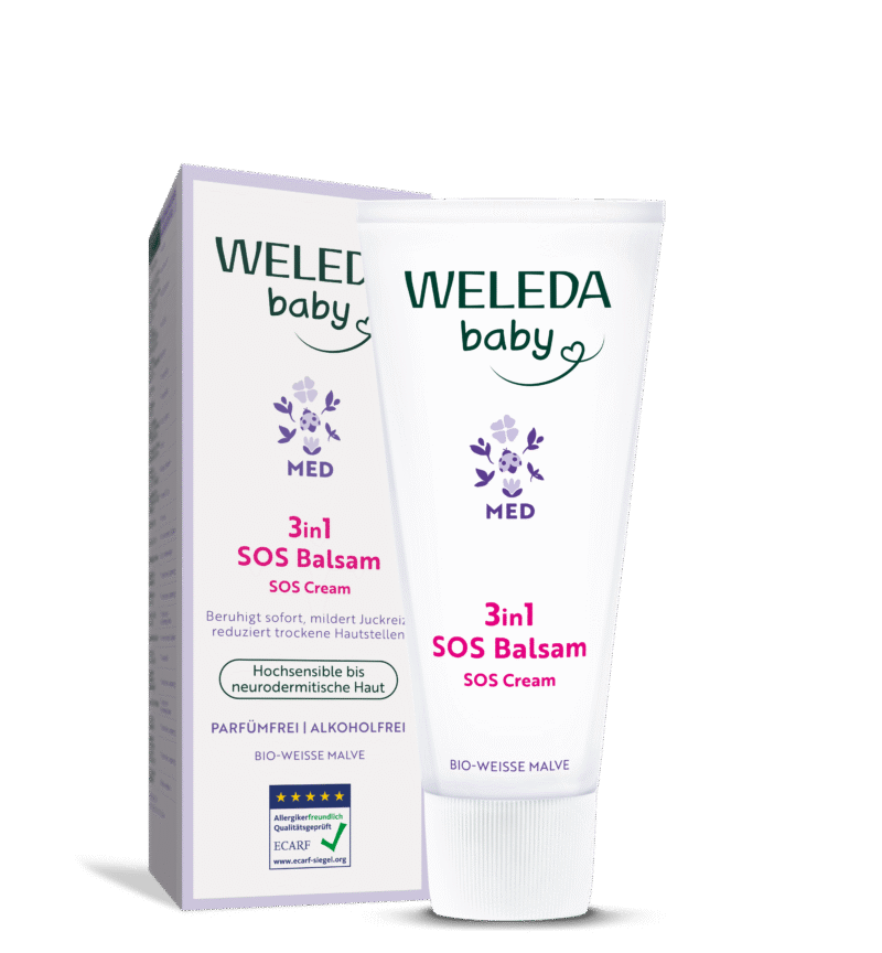Weleda Baby Med 3in1 SOS palsam valge kassinaerise ekstraktiga pakub kohest leevendust eriti tundlikule ja atoopilisele beebinahale. Selle intensiivselt hooldav koostis ökoloogilise valge kassinaerise, ööpriimulaõli ja mondo juureekstraktiga rahustab nahka juba esimesel kasutuskorral ning annab sellele kohese ja kuni 24 tundi kestva niisutuse. Nahabarjäär tugevneb ja on paremini kaitstud. Kuivad ja ärritunud piirkonnad muutuvad taas pehmeks ja siidiseks.